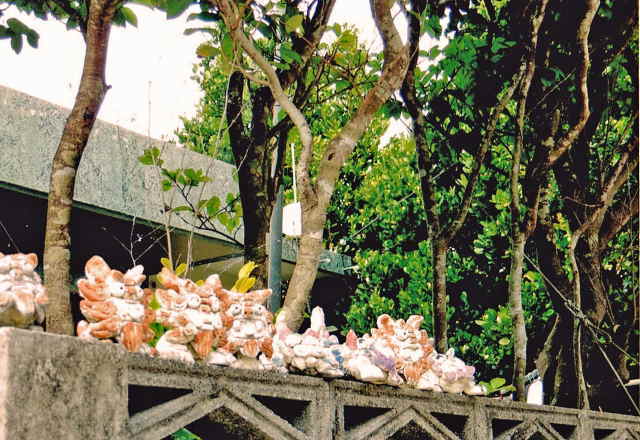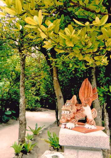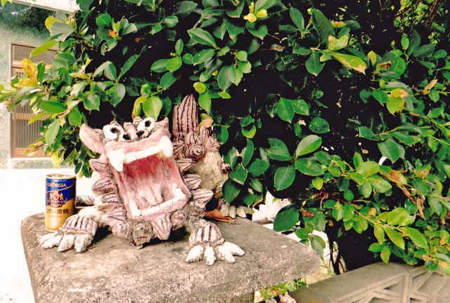 以前作品に描いた備瀬集落 には、ユニークなシーサーが 家を守っていました。